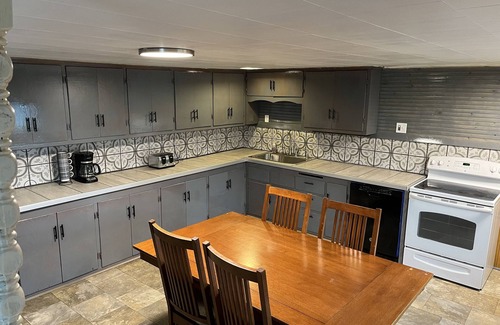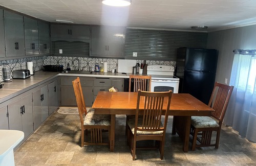 2 bedroom house right on Marina Road! This house has everything you need to enjoy a week or even just a couple of nights at the lake. The house is conveniently located on Marina road, with a large driveway big enough to accommodate your boat during your stay. The kitchen is fully stocked with dishes and cooking items, and has a electric stove, dishwasher, and refrigerator. The large countertop allows for plenty of room for prepping meals, or setting up your buffet. The living room has two couches, shuffleboard, and a 55” flat screen tv(no cable but you can always stream with your online account). And of course it wouldn’t be a trip to the lake without a camp fire at least one night, and the fire pit in the yard is the perfect spot for it.