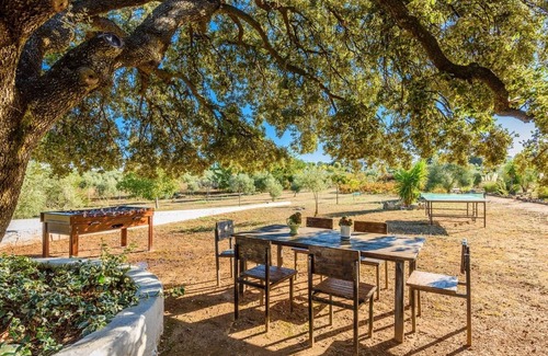 The outdoor area is a spacious terrace featuring a lovely private pool where you can cool off during the hot summer days. There’s a Balinese bed to spend your summer evenings at best, and a swinging sofa that will rock you to some deep siestas. Not to mention the outdoor area for “al fresco” dining, on the porch, and the one in the shadow of a centenary tree. Near the latter, you and your family are provided with a ping-pong table and a soccer table, to engage in fun activities during your free time. There is also an outdoor toilet.