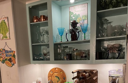 This unique place has a style of its own w/ a screen porch & backyard that opens up to the beautiful Moon Lake & a great pier that allows easy access to the water. There are 3 bedrooms, 2.5 baths. The master has a king size bed, guest room has a queen size bed, & 3rd bedroom has 3 comfortable bunk beds that can handle your whole crew. Great cook house in back yard overlooking the lake. Lots of places to enjoy the sunset and the lake itself whether you are on the pier in the summer, by the fire pit in the fall, or on the screen porch year round!