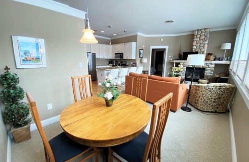 Suite features a stone fireplace, washer/dryer, full kitchen and breakfast bar area, cable TV, high speed internet/wi-fi, and nice views of the marina. A separate bedroom has a queen bed, living room area has a double size sofa. Walk to everything downtown.