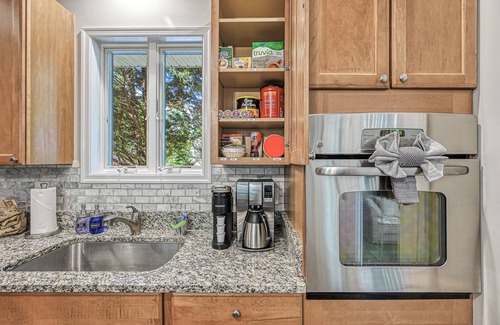 The gorgeous master bedroom, appropriately named "Lakeside Retreat," is on the main floor with its own en suite, newly remodeled, full bath. It has a comfy king bed, huge and bright windows, smart tv, and private access to the wrap-around deck.
