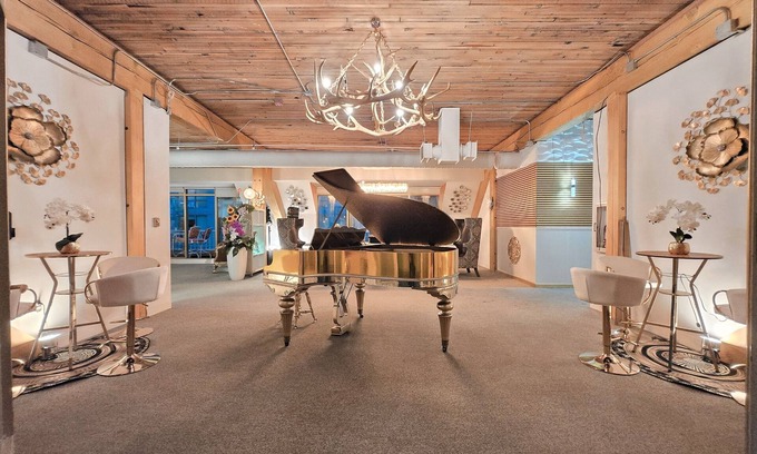 Welcome to Sky Summit — a lavish 2-bedroom, 1-bath retreat soaring above Seattle’s iconic Pike Place Market. Designed for the bold, the creative, and the refined, this distinctive space blends high design with indulgent comfort. From the golden grand piano to custom furnishings and artful lighting, every detail sets the stage for an unforgettable stay.