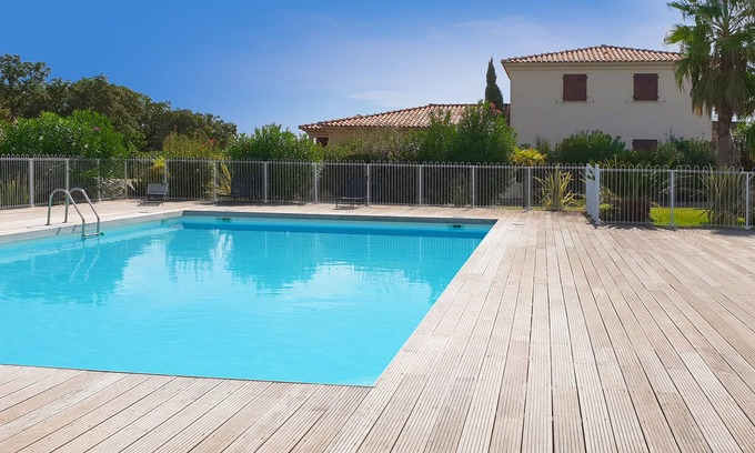 (Text automatically translated) ideally located in a private enclosed area, landscaped garden with a swimming pool and caretaker, sea and beach montagne.Accès Pinarello by footpath. Very good restaurants in the village