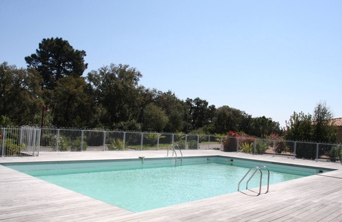 Yes, this Pinarellu apartment has a swimming pool. Check the Facility Overview section for details about the pool and other available facilities.