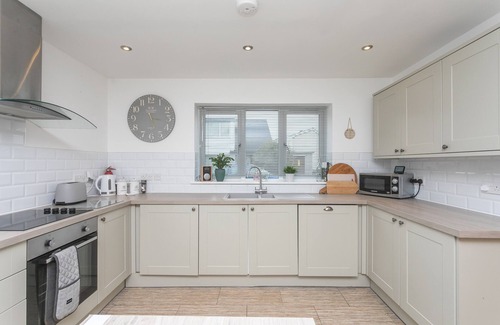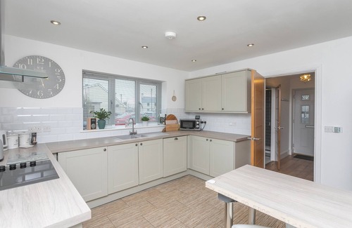 Amenities: Electric central heating. Electric oven and hob, microwave, fridge/freezer and dishwasher. Apple TV, Fibre-optic broadband, board games. Fuel and power inc. in rent. Bed linen and towels inc. in rent. Highchair and travel cot available on request. Private parking for 2 cars. Private decking with furniture. Sorry, no pets and no smoking. Shop 1.3 miles, pub 0.4 miles, beach 1.8 miles