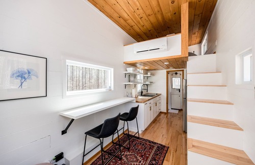 Get back to nature without sacrificing luxury. The Pine Creek Tiny House is a boutique eco-retreat set in the Blue Ridge Mountains of Nelson County, Virginia. Surrounded by 10 acres of pine trees and private access to Taylor Creek, this getaway is perfect for anyone looking for a great weekend away. We are within 20 minutes of Virginia 151, the destination for wine, craft beer, local food, and outdoor recreation lovers. We are conveniently located 30 minutes from downtown Lynchburg. Our 300 square foot tiny home is located on 10 acres of Creekside property in Nelson County. Set on a hill and surrounded by towering pine trees, this is a one of a kind retreat. The Pine Creek Tiny House is outfitted top to bottom with luxury finishes and locally sourced furnishings. Whether you're using the house as a home base to explore the area or hunkering down for a retreat, you'll find a cozy and comfortable place to rest.