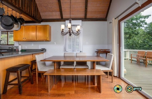 This beautifully updated chalet features a range of amenities to enhance your stay. The open great room, with its delightful dining area and cozy living space complete with a gas log fireplace, sets the stage for intimate gatherings. The modern kitchen is fully equipped, allowing for seamless meal preparation whether you're hosting a pre-wedding brunch or a post-ceremony feast. Accommodating up to 11 guests comfortably, Pine Ridge Retreat boasts a king master-suite loft, multiple bedrooms, and recreational spaces including a finished basement with a pool table. Outside, the wrap-around deck and fire pit invite relaxation and conversation, providing a romantic atmosphere for evening celebrations under the stars.