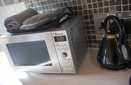 Kitchen with kettle, Tassimo machine, toaster, electric oven and induction hob, microwave, large fridge freezer and washer/dryer. Very well equipped with cooking utensils and essential pantry items. The water supply is from a natural spring.
