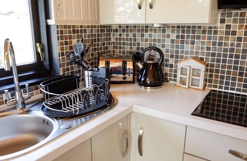 Lounge area with new 40" smart tv. Free Netflix and broadband. DVD player with a varied collection of DVD’s suitable for the family. A very comfortable L-Shaped sofa to comfortably seat six. A selection of games and books. Heated by Electric central heating system with radiators throughout. The lodge is very well insulated and warm, especially on a sunny day when the sun fills the cabin.