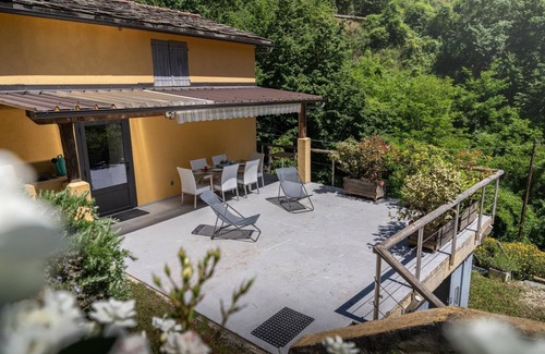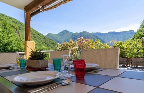House on two levels : Access to the first level via a few steps onto a large equipped terrace : Entrance to air-conditioned living room. Fully equipped kitchen with dining area opening onto balcony. 1 Bedroom with 1 double bed (140x190). Shower room with WC. First level : 1 Bedroom with 2 single beds (80x190) which can form a 160 bed 1 Bedroom with 3 single beds (90x190). Shower room with WC. Garage Cellar on the ground floor : a laundry area and to stock bicycles or other equipment. Large plot of land of 4500 m2 with trees on different levels. Parking in enclosed property. 40 m2 bowling alley and giant chessboard. Sheets and linen provided. Including charges. Tourist tax extra. Languages spoken: French, English and Italian De Detached house on a large enclosed property located on the Col de Brouis road, 4 km from the village of Breil-sur-Roya. Ideal for stays with family or friends. Bordering the Vallée des Merveilles, in the Mercantour National Park. The Roya Valley, labeled a Land of Art and History by the Ministry of Culture, presents a natural and cultural heritage of remarkable richness and diversity.