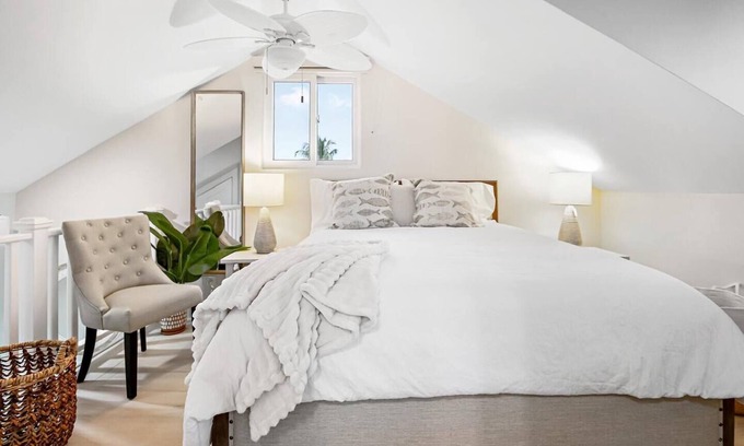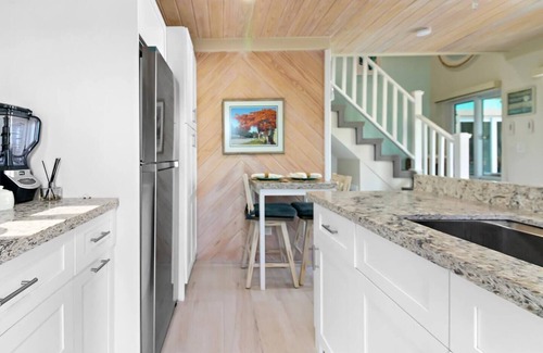 Discover luxury in perfect proportion at Pineapple Villa, where contemporary elegance meets authentic Bahamian charm across two thoughtfully designed levels. This unique 1-bedroom sanctuary features an upstairs queen bedroom with premium linens and a downstairs living area with versatile sleeper sofa and fully equipped gourmet kitchen.
