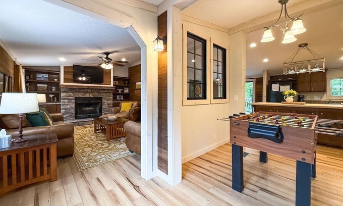Experience tranquility at Pinecrest Haven, a welcoming 3-bedroom, 4-bath cabin located near Cobden, IL, surrounded by nature's beauty. Thoughtfully designed for comfort and privacy, this charming retreat features two spacious king bedrooms and a separate room with two twin beds, ideal for families and friends alike. The cabin boasts modern conveniences, including air conditioning, central heating, complimentary Wi-Fi, and a fully equipped kitchen perfect for home-cooked meals. Unwind on the cozy porch, reconnecting with loved ones under the peaceful canopy of towering pines in the heart of Shawnee Hills.