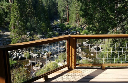 This beautiful 2 story cabin is right on t he river in strawberry at an elevation of 5600ft, you can see the river and hear the river from every room. The deck is wonderful, what a view, listen to the water the wildlife and enjoy the beauty of the Sierra's. 2 bedroom 1.5 bath, sleeps 8 with sofa in living room, all new, high ceilings, knotty pine interior, huge fireplace, wood provided, full kitchen, microwave, coffee maker, washer, dryer, dishwasher, deck, BBQ, patio furniture. Driveway is a long gravel road, drive slowly please!