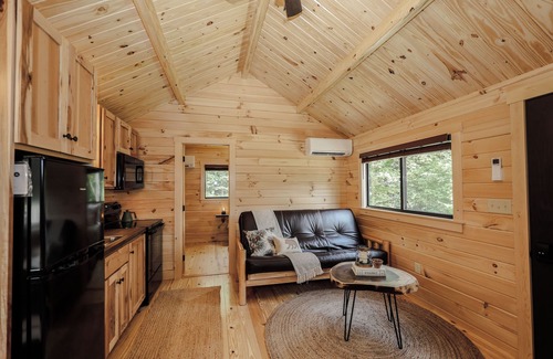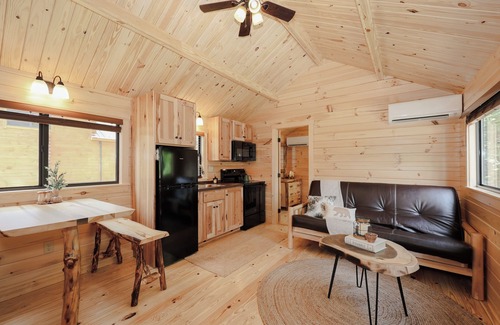 Welcome to PineHaus - a cozy, newly built log cabin made from solid timber with true rustic charm. This 400 sq ft space feels roomy with a loft and two private bedrooms. Sleeps up to 8 people. You'll find a full kitchen, bathroom with shower, grill, and a private fire pit by the brook. Just minutes from Loon Mountain and downtown Lincoln. Relax, unplug, and enjoy the sound of the water and the fresh mountain air.