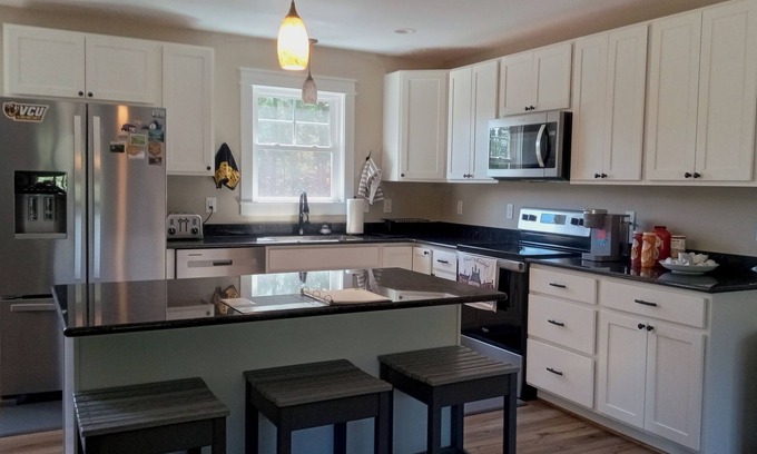 Your cozy getaway awaits in Cumberland at this welcoming cottage! With 2 private bedrooms featuring dedicated bathrooms, guests can expect the most peaceful of retreats. The cottage also offers a full kitchen and laundry, plus a dedicated office workspace/extra bedroom. Nature abounds with evergreen forest on all sides! Just minutes to historic Cumberland Courthouse, Powhatan, Buckingham, Farmville, and Longwood University. Excellent base for exploration of nearby Bear Creek and High Bridge Trail State Parks. Hunters, traveling professionals, families, and pets welcome.