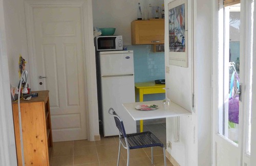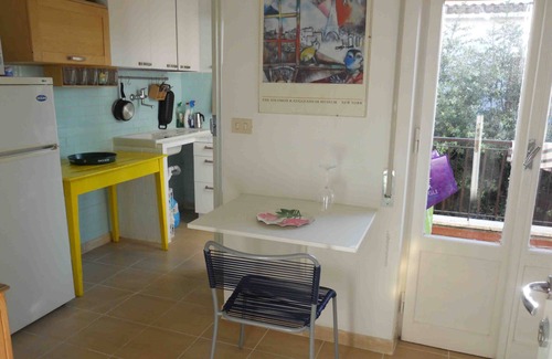 on the first floor a comfortable lounge / dining room with sofa bed, TV, 2 bedrooms, a kitchen with electric oven and gas burners and fridge, a bathroom with shower and washing machine, a large corner terrace on the floor in the shade of pine trees with dining table and seats;