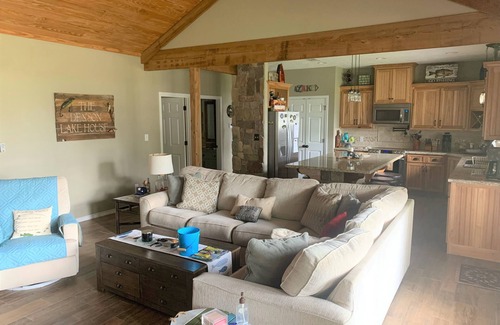 Great waterfront home near the 147 bridge. Located near Castle Boykin and Jackson Hill Marinas. Wifi available with keyless entry. 3 Bedrooms / 3 Bathrooms. Large kitchen Island with 10 barstools. Murphy bed located in the living room. Laundry room with Washer / Dryer and an extra refrigerator. Large back porch with smart TV which includes direct TV and sports package. Black stone griddle and propane Grill. Firepit on back porch and 2 in the back yard with outdoor seating. Large outdoor kitchen with picnic table and an amazing view of Lake Rayburn.