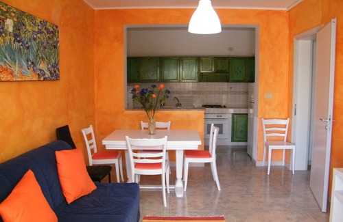 Apartment composed of two bedrooms, one double with an additional bed (and complete private bathroom), one twin, living room with sofa bed, American kitchen, equipped outdoor area, with table, deck chairs, stone seat with cushions, outdoor shower and outdoor sink.