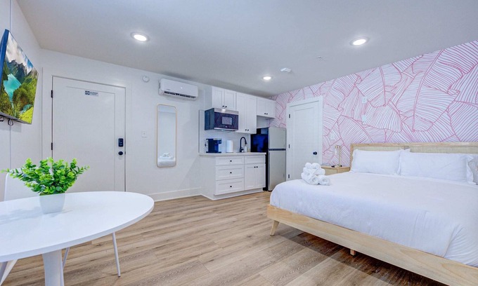 Nestled just blocks away from the renowned Seawall in Galveston, Texas, the Pink Flamingo Studio Apartment is an idyllic choice for couples looking for a unique wedding accommodation. This charming studio offers an intimate setting designed for romance and celebration, making it the perfect backdrop for your special day. With cozy comforts and modern amenities, you can relax and enjoy every moment as you prepare for your wedding festivities.