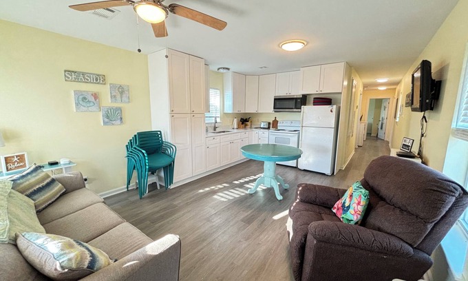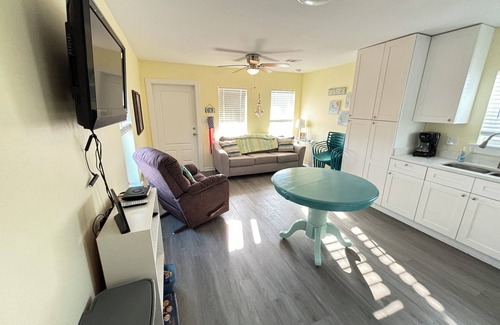 Pink Pelican is on the water located right near Rusty's Boat. There are 2 bedrooms/1 bathrooms. Can sleep up to 5 people.