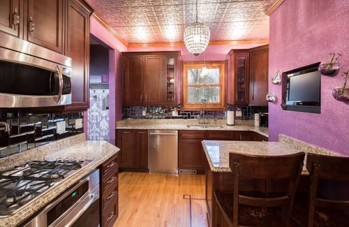 A gorgeous victorian mansion built in 1883, filled to the brim with over the top lavish glamour and lots and lots of PINK. You can even rent a pink escalade, or a pink moped with eye lashes for an additional fee!