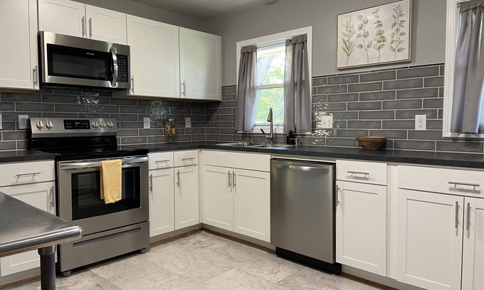 This spacious 2-bed, 1.5-bath home is perfect to unwind & relax. Newly remodeled with all modern amenities: smart TV, Wi-Fi, a full-size kitchen, washer/dryer, linens provided, covered porch with chairs & charcoal grill.