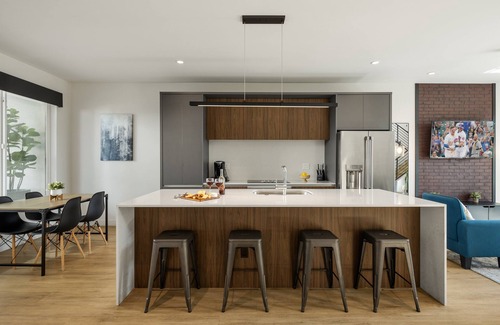 Step into the expansive open-concept living areas, meticulously designed for relaxation and entertainment. Each unit features a spacious living room with contemporary furnishings and plush sofas that convert into Queen beds for additional guests. Enjoy state-of-the-art Smart TVs for movie nights or catching up on your favorite shows. The living areas seamlessly flow into gourmet kitchens equipped with high-end Café appliances, large islands with bar seating, and all essentials for culinary enthusiasts. Adjacent dining areas provide comfortable spaces for enjoying meals with family and friends, while private balconies offer perfect spots for coffee or cocktails, ensuring comfort and convenience throughout your stay.