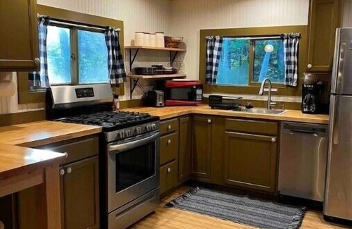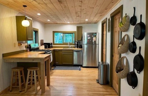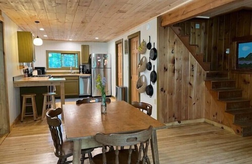 The cabin is open concept on first floor-living/dining area is open to kitchen area which is great for hanging out together. The bathroom is off the kitchen and has a brand new shower stall. All 3 bedrooms are upstairs and there is a white noise machine in each one. The two smaller bedrooms each have queen beds plus one has a crib. The larger bedroom has a king size bed. All mattresses are brand new and high quality, all beds have real goose down comforters. Sheets and towels provided. The cabin has been freshly painted, floors downstairs refinished, new kitchen with DISHWASHER, full size refrigerator, and 5 burner gas stove. There is a drip coffee maker and coffee grinder here as well as a french press. We spend a lot of time here ourselves and consider it to have everything we need while keeping it simple. We do not have cable but we do have fast wifi and a smart tv to access your apps. We are pet friendly to responsible pet owners. We love pets so please, please, please clean up after yours inside and out and keep them off furniture so that we can continue to allow them for all of our guests. Our plowing service will clear the driveway when we have 5+ inches of snowfall. Shovels and ice melt are provided to clear the entrance and deck as needed. Any questions about the property or the area please feel free to reach out! I pride myself on being a reliable host with quick responses. Hoping to check in early on the day of your arrival? I offer a 1/2 day rate. Please contact me at least 24 hours ahead of your arrival to arrange this.