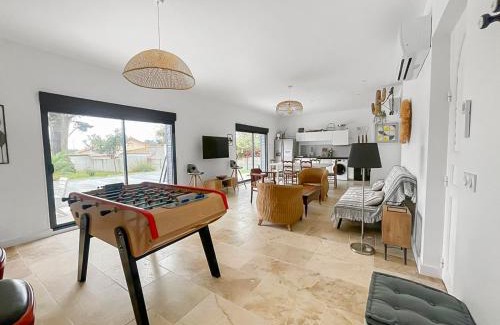 Just a 6-minute walk from Birochere and 0.7 miles from Pornic Train Station, Piscine privée proche Thalassothérapie et Mer features accommodations in Pornic, with a seasonal outdoor swimming pool and a garden. This property offers access to a terrace, free private parking, and free Wifi. Outdoor seating is also available at the villa. The air-conditioned villa consists of 3 bedrooms, a living room, a fully equipped kitchen with a dishwasher and a coffee machine, and 1 bathroom with a shower and a hair dryer. Towels and bed linen are available in the villa. For added privacy, the accommodation has a private entrance and soundproofing. Pornic Castle is 1.1 miles from Piscine privée proche Thalassothérapie et Mer, while Noëveillard Harbor is 3.2 miles from the property. Montoir Airport is 17 miles away.