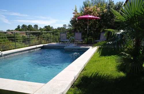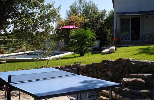 On the heights of the village quiet pleasant contemporary villa with comforts in an environment good feeling the Provençal countryside. Swimming pool (4 x 6 prof 1.80) with alarm, sunloungers, terraces with garden furniture and barbecue. 1200 m² of land partly enclosed with electric gate, parking. Table tennis and bowling green. Villa in the hills, very quiet environment. Ground floor: equipped kitchen open to living room with fan in ceiling, two bedrooms with each a double bed 160 cm, bathroom with wc. Mezzanine single 90 cm bed and a bed double 140cm, office and play area.