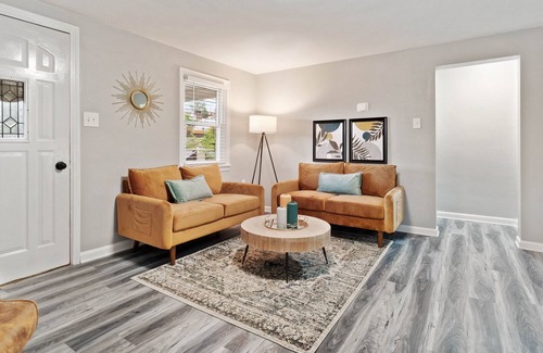 Plan your next thrilling city break getaway here at our lovely 4-bedroom house, a charming 1,080 sq. foot retreat with effortlessly curated art-inspired boho interiors. Escape to a world of thrilling roller coaster rides at Kennywood Park, splash your way through Sandcastle Waterpark or discover the rich history of downtown Pittsburgh all under 10 miles away. Afterwards, spend your time playing board games, watching movies on the 50” HDTV or chatting around the cozy fire pit in the backyard!
