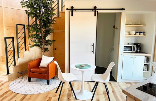 - Bright, pristine interior with plenty of natural lighting and a giant hexagon window in the loft