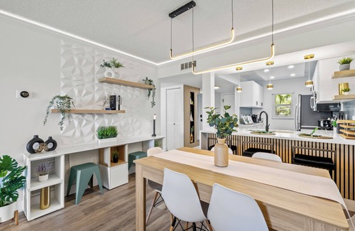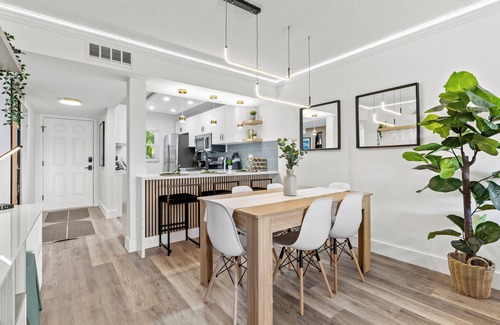 Fully Equipped Kitchen: The state-of-the-art kitchen is fully stocked with all the appliances and cookware you need to prepare anything from a quick snack to a gourmet dinner. You'll find a full-size refrigerator, oven, microwave, dishwasher, and more. A breakfast bar offers additional seating for casual meals or morning coffee.