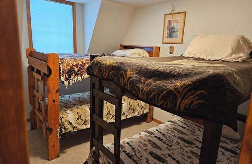 Discover the beauty of this Platte River Retreat from this 4-bedroom lodge. Nestled in a serene setting, this lovely property features 3 queen beds, 4 bunk beds, and 3 bathrooms with showers (one is a shower/tub combo). With amenities like WiFi, AC, three Samsung Smart TVs, and a full kitchen, guests can relax in two spacious living rooms. This is a great location to get away from it all and enjoy birdwatching, abundant wildlife, and scenic sunrises or sunsets. Perfect for a secluded weekend get-away for a couple or a week's vacation for a family. Let the kids go play in the Platte River when the river is low in July and August. There are two miles of mowed trails to take you on a hike throughout the woods and to the river. A small pond is perfect for the kids to catch bass and bluegill (bring your fishing equipment!). This lodge is located by itself with the closest neighbor being a quarter mile away. We hope you enjoy what our place and the beautiful Platte River have to offer.