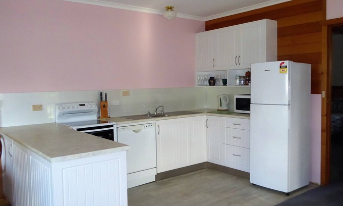 Your two bedroom apartment is situated on a small rural property just a few minutes drive to the town centre of Bridport. Fully self contained, with new modern kitchen, new bathroom, comfortable living room with flat screen smart TV. One bedroom has a queen bed and the second bedroom has two single beds. The living room also has a double sofa bed. You also have use of the pool table in the games room and can wander the seventeen hectares to the Brid river to see a platypus. There are also cattle and chickens on the property and trout fishing dams, and of course the friendly kelpie cross Sofie, who just loves people. Peace and quiet in the countryside but close to the beaches, restaurants and shops - perfect.