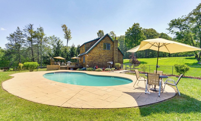 Play, Swim & Unwind: Family Home in Glen Wild! is located in Circleville. Play, Swim & Unwind: Family Home in Glen Wild! provides accommodation, featuring Pet Friendly, Fireplace/Heating, Barbecue/Outdoor Cooking, among other amenities. This House features Pet Friendly, Fireplace/Heating, Barbecue/Outdoor Cooking, to make your stay a comfortable one.