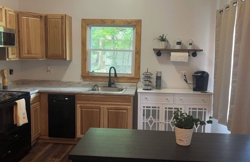 Your Wappapello adventure begins at this 1-bedroom cabin. Nestled in a serene setting, this fantastic property offers a pleasant escape for guests and is located just a .5 miles from Lake Wappapello. The cozy bedroom features a comfortable queen bed, ensuring a restful night's sleep. There is also a twin roll away bed for extra sleeping arrangements. With amenities like a washing machine and dryer, AC & heat, iron, Starlink WiFi, and a hair dryer. The kitchen is equipped with everything you need to cook a meal plus a keurig coffee maker and different flavor coffee pods. The bathroom boasts a bathtub/shower. Plus, there's an additional living room space with and electric fireplace and a futon, providing extra comfort(the living room and bedroom are an open area, no door between). The sun porch has a lot of light and a porch swing with a door that leads to the back deck with outdoor furniture, a fire pit and a bbq grill. The front porch is spacious with rocking chairs. You’ll have everything you need for a fabulous stay! Please note: we are pet friendly, there is a $40 pet fee per stay, we just ask to keep the limit to 2 pets. We hope you'll enjoy your stay at our charming cabin.
