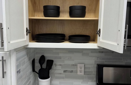 Fully equipped with kitchen gadgets and utensils for guests to cook and serve up delicious meals!