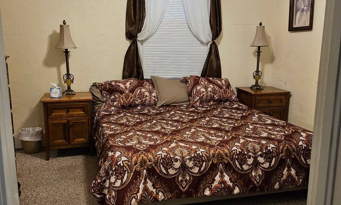 Make yourself at home in this delightful 2-bedroom Carlyle retreat. With a king bed and a queen bed, guests will have a comfortable stay. Enjoy the jetted bathtub, bidet, and other bathroom amenities provided. Additionally, there are two extra spaces, one with a futon and the other with a queen air bed, perfect for relaxation or work. Our place will help you feel at home while you're traveling in Carlyle.