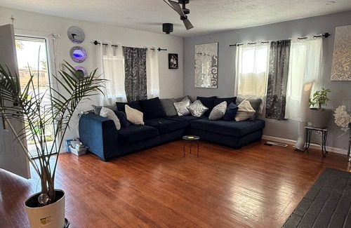 Located in Albuquerque, enjoy what this 3-bedroom house has to offer. With 2 queen beds and 1 futon, guests can relax comfortably. The house features amenities like AC, iron, hair dryer, and heating.