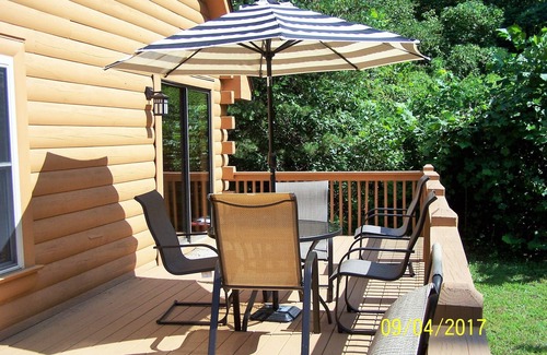 This clean and comfortable log cabin is situated on a private 3 acre lot located close to a fantastic 18-hole golf course and is just 6.3 mile from the TIEC. The rustic/modern cabin is fully furnished and offers the perfect blend of country charm and modern conveniences with all the amenities needed to feel like home, including stainless steel appliances, central heating/air, and wireless internet. Sleeping arrangements include a queen bed in each of the two bedrooms and a queen sleeper sofa each in the living room and loft. Outdoor features include a deck with dining/lounge furniture and Weber gas grill, and a nice fire pit in the yard. Horse trailers welcome.