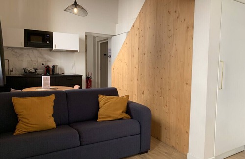Arranged as a duplex, it is fully equipped for your comfort (wifi, basic products, Nespresso coffee machine, hair dryer, TV, iron, fan).