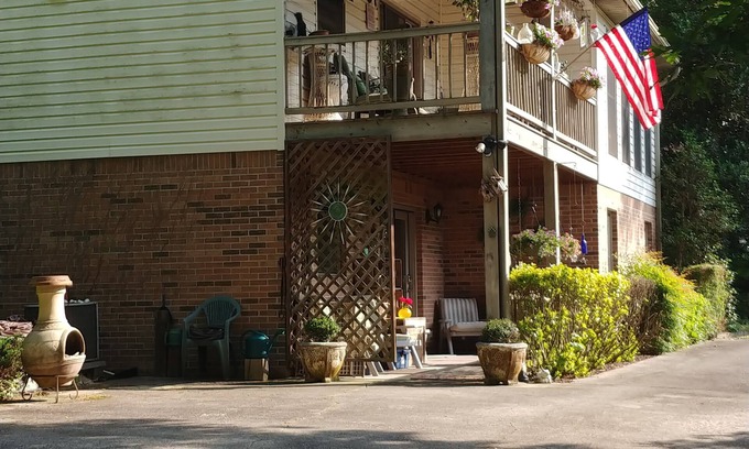 Located in Franklin, NC, Pleasant Hill Getaway is a charming, quiet, separate lower level apartment nestled in a lush and blooming garden of a private home. Situated in the rolling hills of The Blue Ridge Mountains, Pleasant Hill Getaway offers comfort and relaxation after your latest fun and thrilling adventure. Only a few short minutes from Franklin's Main Street with boutique shopping, restaurants, coffeehouses, and the Scottish Tartan Museum. Two local Breweries right in town. Or travel to neighboring areas to steep yourself in quiet green forests and sparkling waterfalls.