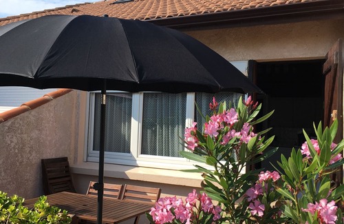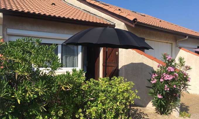 It is ideally located a 2-minute walk from the fine sandy beach in south Mimizan. This is a delightful 40-sq.m semi-detached house. Bright, you enter the house via the southern terrace through the living area, the open-plan kitchen. You can find a 140-cm sofa bed, a 140 x 200 cm bed, and a chest of drawers on the Mezzanine, lit by a skylight. A corridor with a WC to your left, a shower room to your right and at the far end a separate bedroom with bunk beds and a walk-in wardrobe that leads through a door to the second terrace and a coastal garden (shared with clotheslines). The house has all mod cons including a television with TNT freeview channels, a satellite TV, by ASTRA 1 (code access). Private car park in the building The quiet neighbourhood a bakery, and the butcher shop are 300 m away. You can go everywhere walking or by bike. The town with its restaurants and entertainment is an 800-m walk away. Degressive charges for rentals of more than one week. Weekend and shorter stays are available. Tourist tax from 1st April until 30th of September is an extra € 0.44 per night per person over 13 years of age.