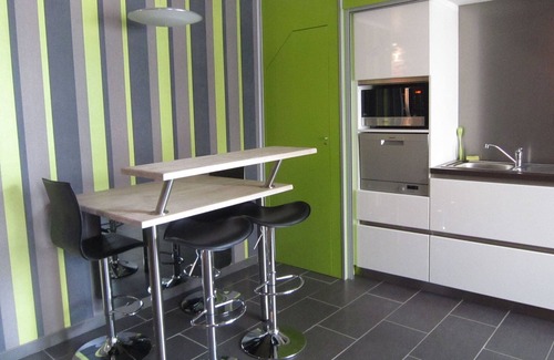 Well-equipped and bright, this holiday home has a furnished terrace, where you two can enjoy drinks. Parking is on-site. Spend a lovely evening in front of the open fireplace (bio-ethanol) after a wonderful meal prepared in the modern kitchen. A childrens bed is also available.
