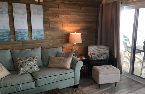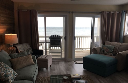 Gorgeous, newly remodeled 1 bedroom beach condo in The Riggings - Building 4 P1. This is a bottom floor oceanfront unit with tons of privacy since it faces Fort Fisher State Recreation Area next door and there are no neighbors on that side. We have equipped our home to a high standard and tried to anticipate your needs by providing all the things you might want for a luxurious stay. Our home has a single bedroom with a brand new king-sized bed with a memory foam mattress and luxurious linens. There are two twin bunks with privacy curtains and new memory foam mattresses in the hallway alcove that adults will find very comfortable and kids will have fun with. The deep seating couch in the living room has a very large over-sized queen sofa bed with a brand new memory foam mattress for maximum comfort.