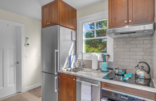 This 1-bedroom, 3-bathroom rental features a memory foam bed and premium bedding. The kitchen is stocked with a refrigerator.