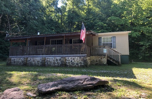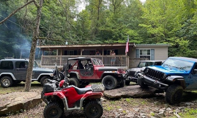 Horsin’ Around House at Plum Crazy Appalachian Resort is a family friendly dog friendly Appalachian mountain getaway walking distance from two waterfalls and fishing across the street. Drive your SxS/ATV/Jeep out the driveway onto Rock Creek Ln 1 mi to Rock Creek waterfall and trails #3 & #36 just past the falls (you will need to purchase a per vehicle license to ride TWRA) WE HAVE SxS RENTALS AVAILABLE for booking separately. We can also help you book Trail Guides and buying your Trail pass. There is plenty of parking for vehicles and 2 trailers around the house (we have had three 24’ trailers up there but not recommended) we have easier flat parking a couple blocks away in our dry flat yard. We have a hose with sprayer outside, old towels for ATVs/Dogs/mud clean up and a washer/dryer just inside the mudroom. There’s a couple boulders to park your SxS/Jeep on and take pictures at the top of the driveway. We have a firepit surrounded by boulders to sit on with solar lights around the perimeter and charcoal grill. Full amenities in the kitchen including blender, coffee makers, crockpot, and even an ice cream maker are provided for your use. The house has a huge deck with plenty of room to play games available or sit on the porch swing and read a book. We have high speed internet, smart TV, private TVs in both bedrooms and plenty of DVDs to choose from. The main bedroom suite has a large garden tub and a large separate shower. The living room couch does not pull out but is twin bed size with extra sheets in the bedroom closet, there are no more bunkbeds but there is a daybed/twin bed in the great room area. If you have little kids with small ATV/dirt bikes too small for trails we have a huge yard around the playset & firepit next door they can ride all over. There are pan fish in the creek for the kids to wade in and catch. Follow our Facebook page Plum Crazy Appalachian Resort for resort updates and Shenanigans going down in the area. Instructions on how to get free area trail maps check out our pinned posts.