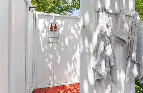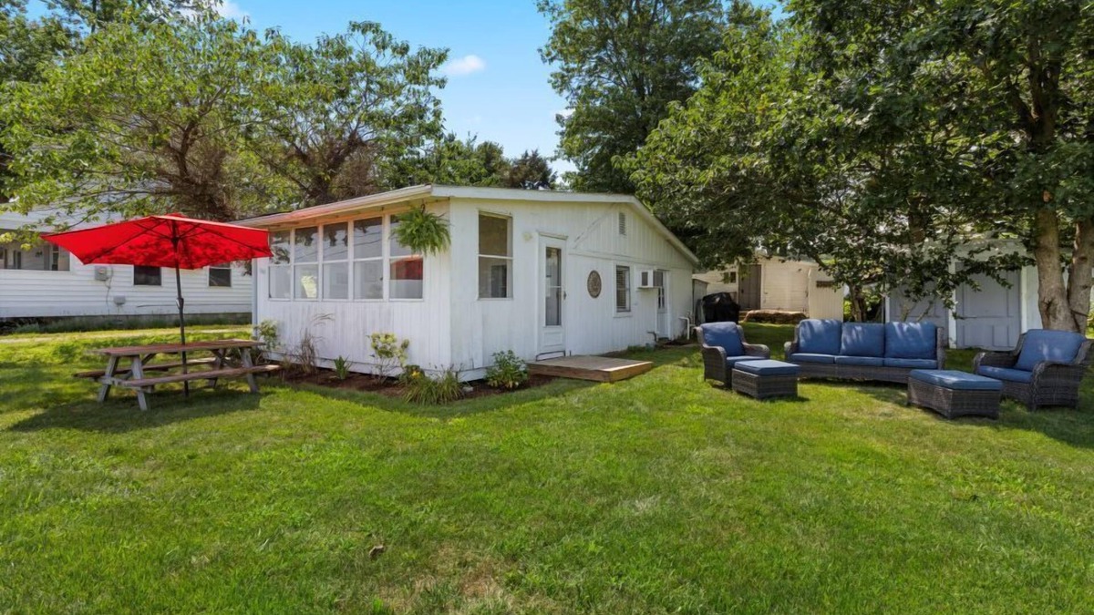 Chesapeake Bayfront bliss! Just steps from the sand, Cottage 18 features panoramic water views, a king bed, bunk room, and efficiency kitchen. Relax on the spacious porch or enjoy free kayaks, bonfires, and volleyball. Perfect for families or couples seeking a peaceful escape. Includes private ADA-compliant outhouse + outdoor shower. Close to Solomons Island, beaches, and wineries. Rustic charm meets unbeatable views at Plum Point!