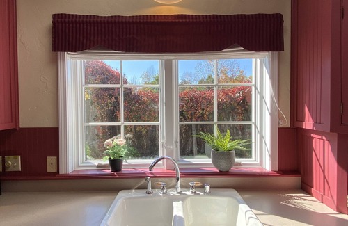 "Plum Retreat" is a private, and cozy-and-yet-spacious portion of an adorable cottage hiding behind an ornate garden gate, and sleeps 2-6 guests over two levels. The property is part of the picturesque "Green Gables" property in the north part of Ephraim, and is within easy walking distance to galleries, shops, mini-golf, breakfast and pizza, and a short drive from Ephraim village and the water. Green Gables itself has the flavor of a romantic bygone Americana era, and boasts beautiful manicured and award-winning gardens and additionally (in the past, and in the future!) another very large enclosed rear garden area (currently under exciting development). The property is suitable for couples or families and at night it's dark and quiet for stargazing. The house oozes feel-good charm, with lots of windows and natural light, architectural details, and plenty of space indoors and out, to play and relax in. Outside there's a fantastic patio lounge area and professional grill to enjoy, and inside a formal fireplace invites you to curl up on the sofa-bed (with an old record playing on the vintage stereo/record player)? Full kitchen, with oven, fridge, dishwasher, microwave, toaster etc. Upstairs there are two very large bedrooms (one with a king bed, the other with two queens), and there's a true queen sofa-bed downstairs. All the bedding is non-allergenic. Wi-fi, a 49" TV with cable channels, Netflix and Amazon Prime in the living room, and a washer and dryer upstairs. The space works well for families, or two small families to share, or just for a couple looking for a romantic or memorable Door County vacation. In response to COVID-19 cleaning and sanitizing will be thoroughly undertaken. Thank you!